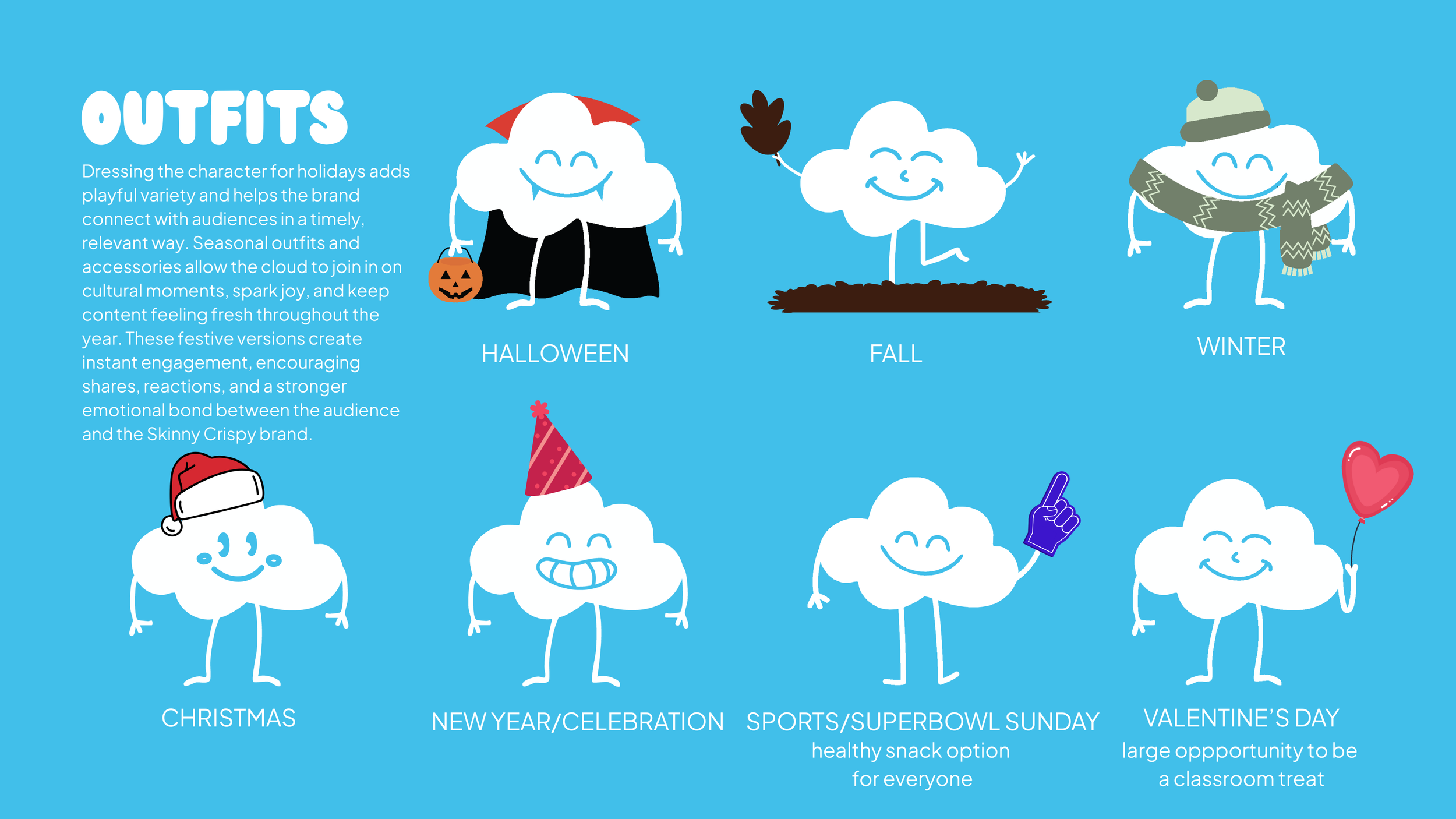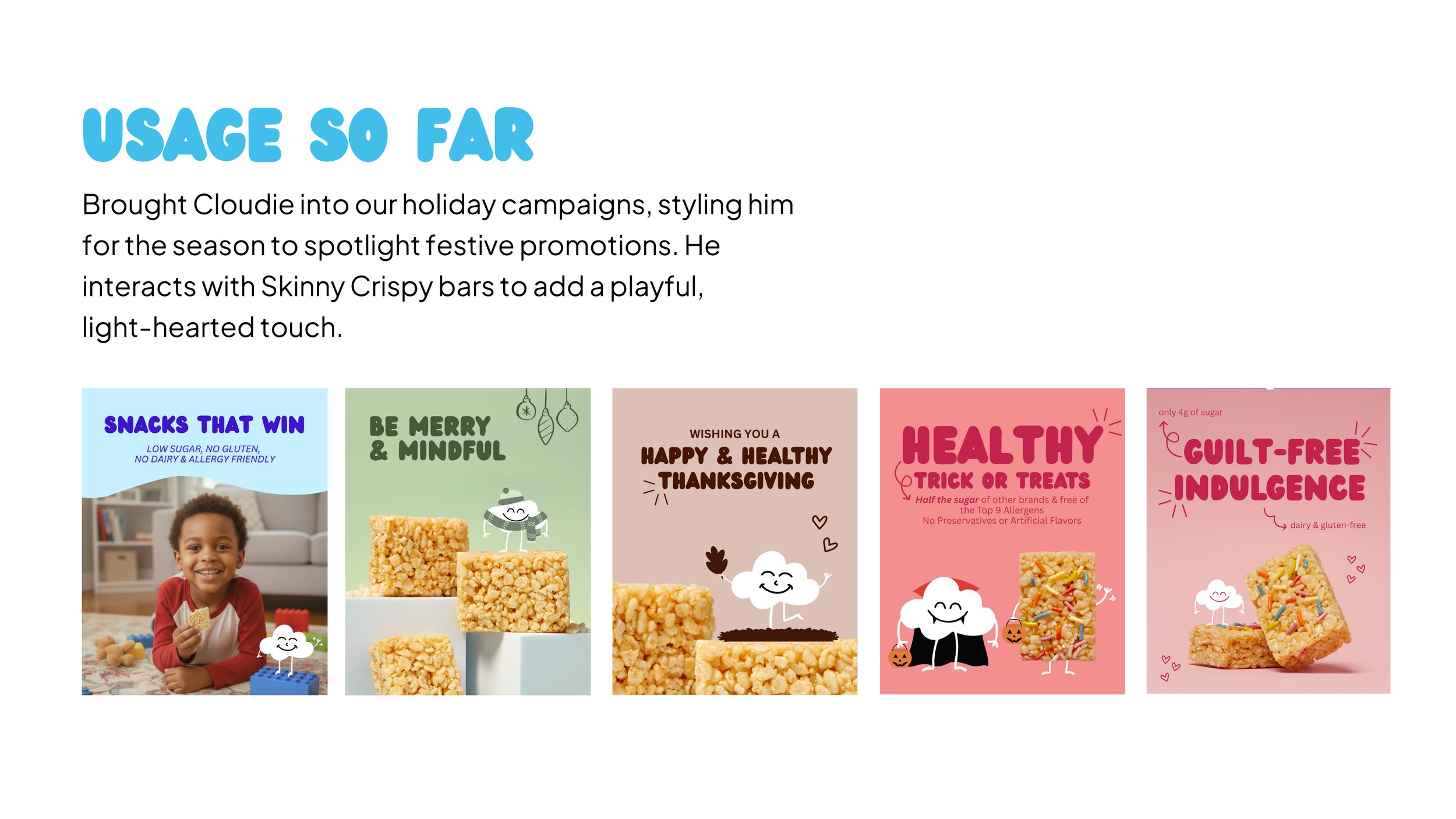 Skinny Crispy is the first client I was added onto, to create static posts for their social media that built emotional connection and brand trust, highlighted their flavors, boosted their visibility, and drove buzz and seasonal relevance. Note: as consumer behavior shifts with changing trends, we adapted our content strategy by embracing carousel posts, a format showing strong positive engagement across platforms. I have since taken on a strategic role, conducting research into industry trends and competitive brand behavior to identify what is performing effectively. Building on this insight, I developed a comprehensive usability guide for the brand’s existing mascot, defining how it can be integrated across content platforms while establishing a clear personality and voice.