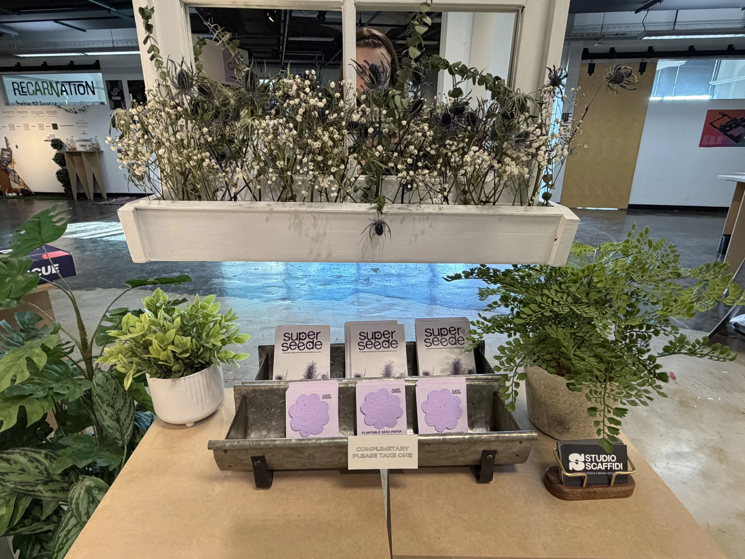 The first was plantable seed paper that dissolves completely when planted, growing into wildflowers. This initiative encourages a community effort to reduce CO₂ in the atmosphere while demonstrating how simple it can be to take small, impactful steps toward helping the planet.