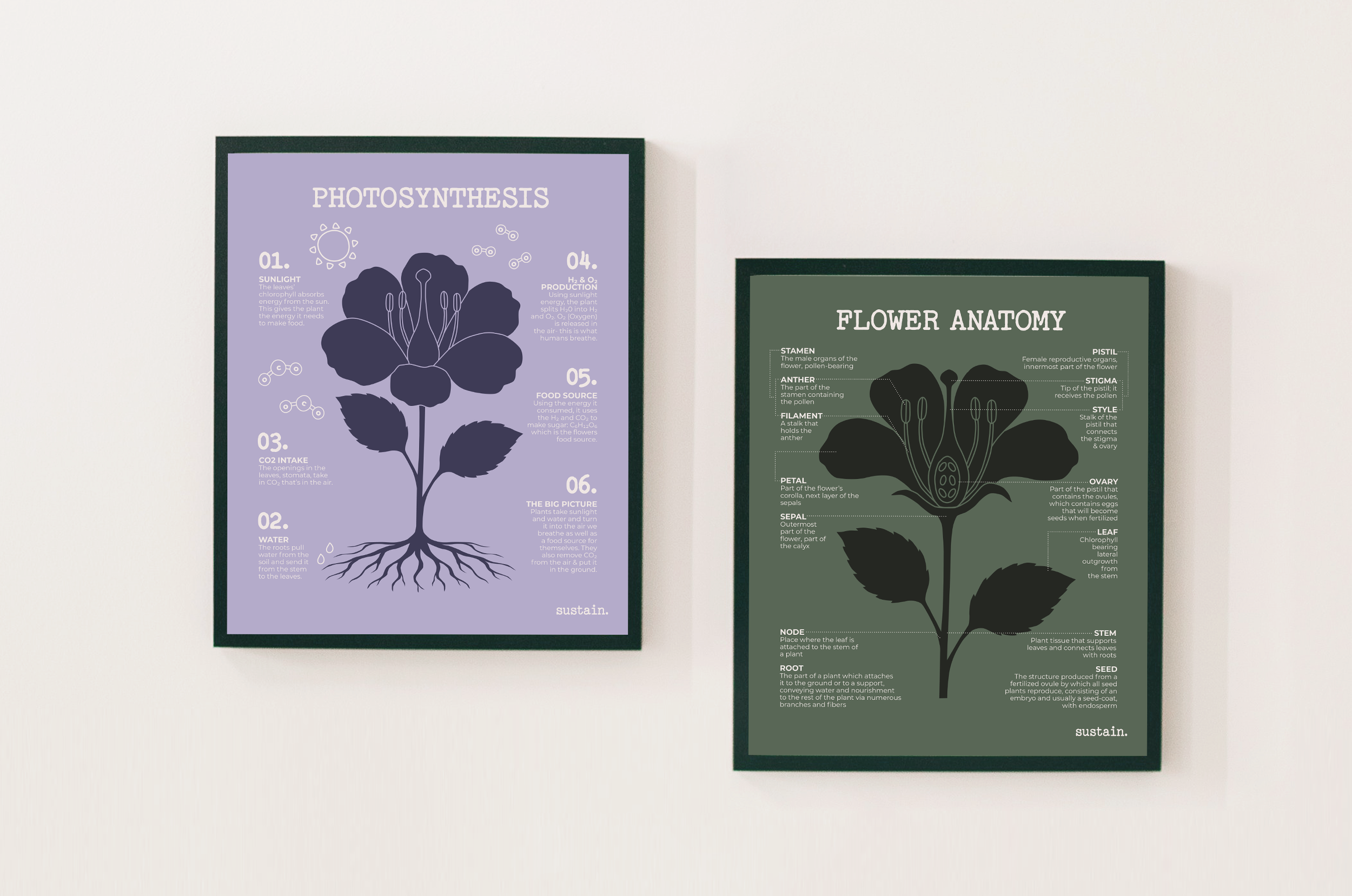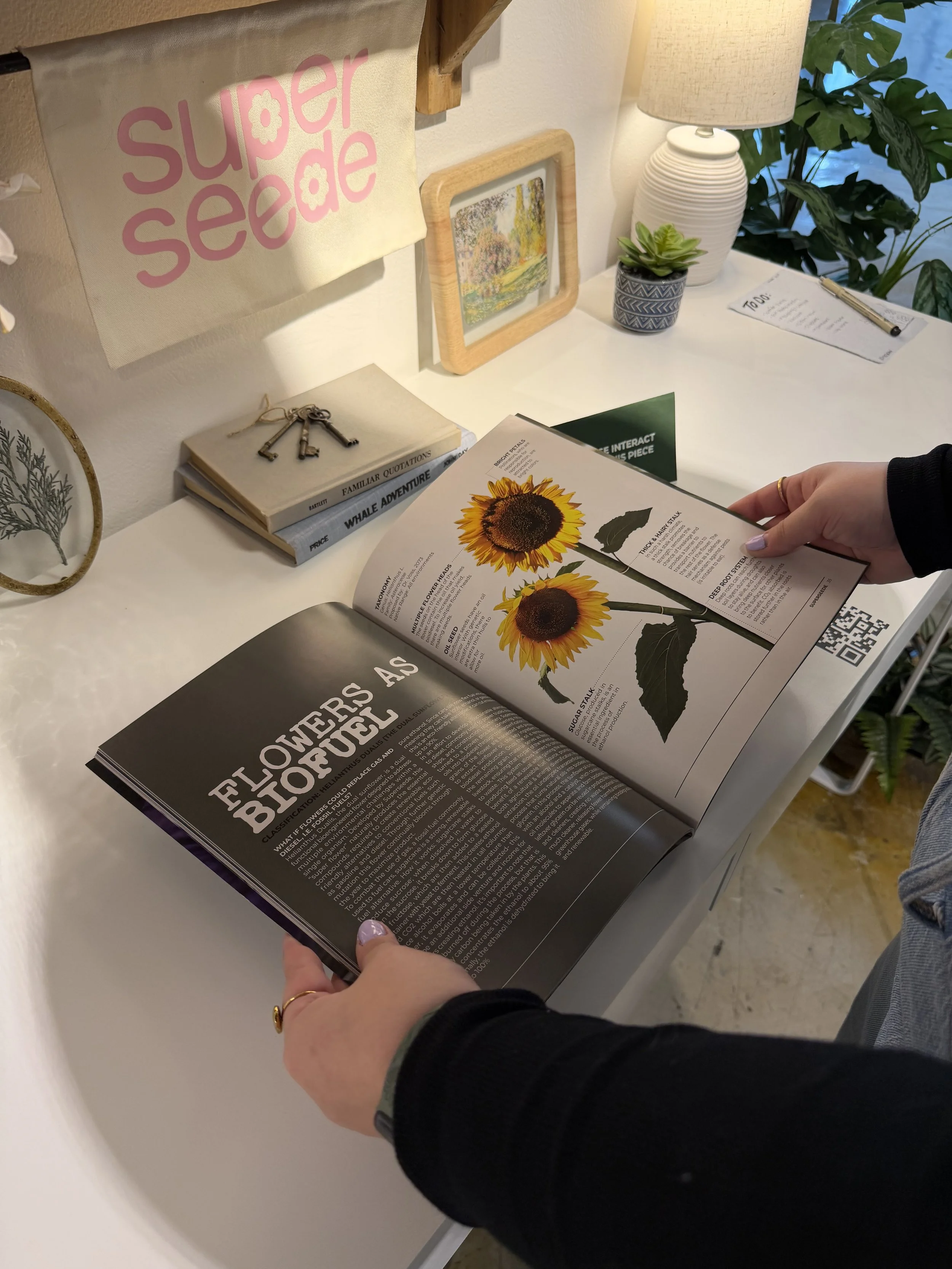 Each edition includes two complimentary posters. Given that Superseede focuses on flowers and their genetics, Superseede and Sustain collaboratively selected diagrams of Photosynthesis and Flower Anatomy to provide both educational value and visual engagement. Superseede also sent a postcard to their top customers and followers as a gesture of appreciation.