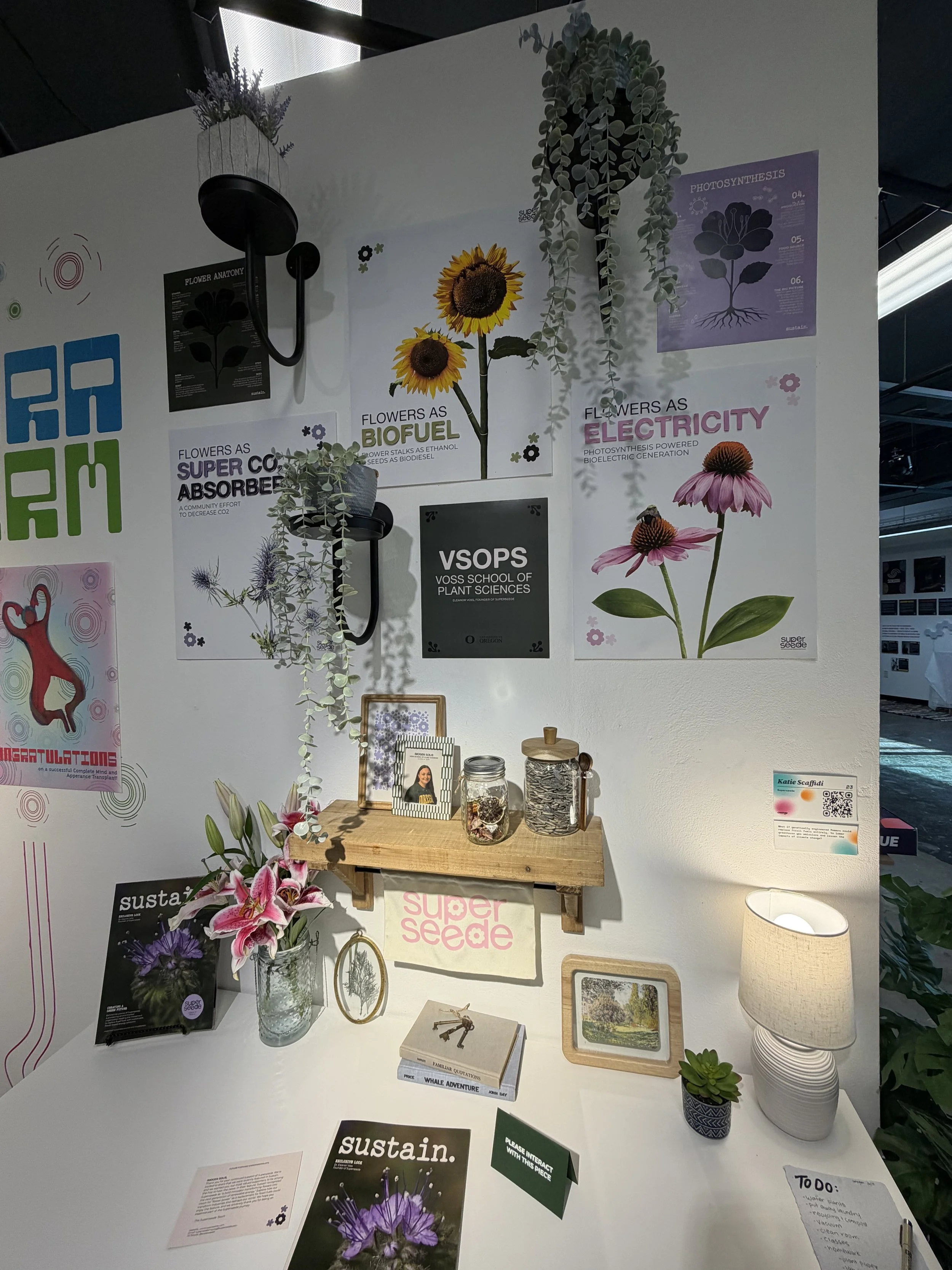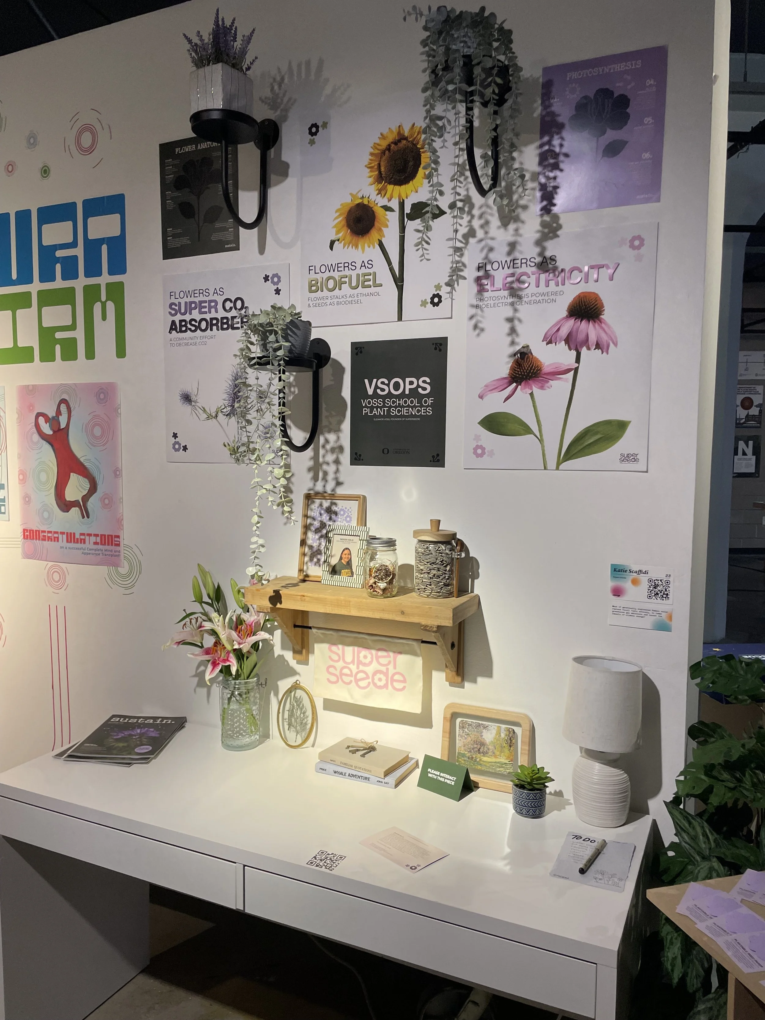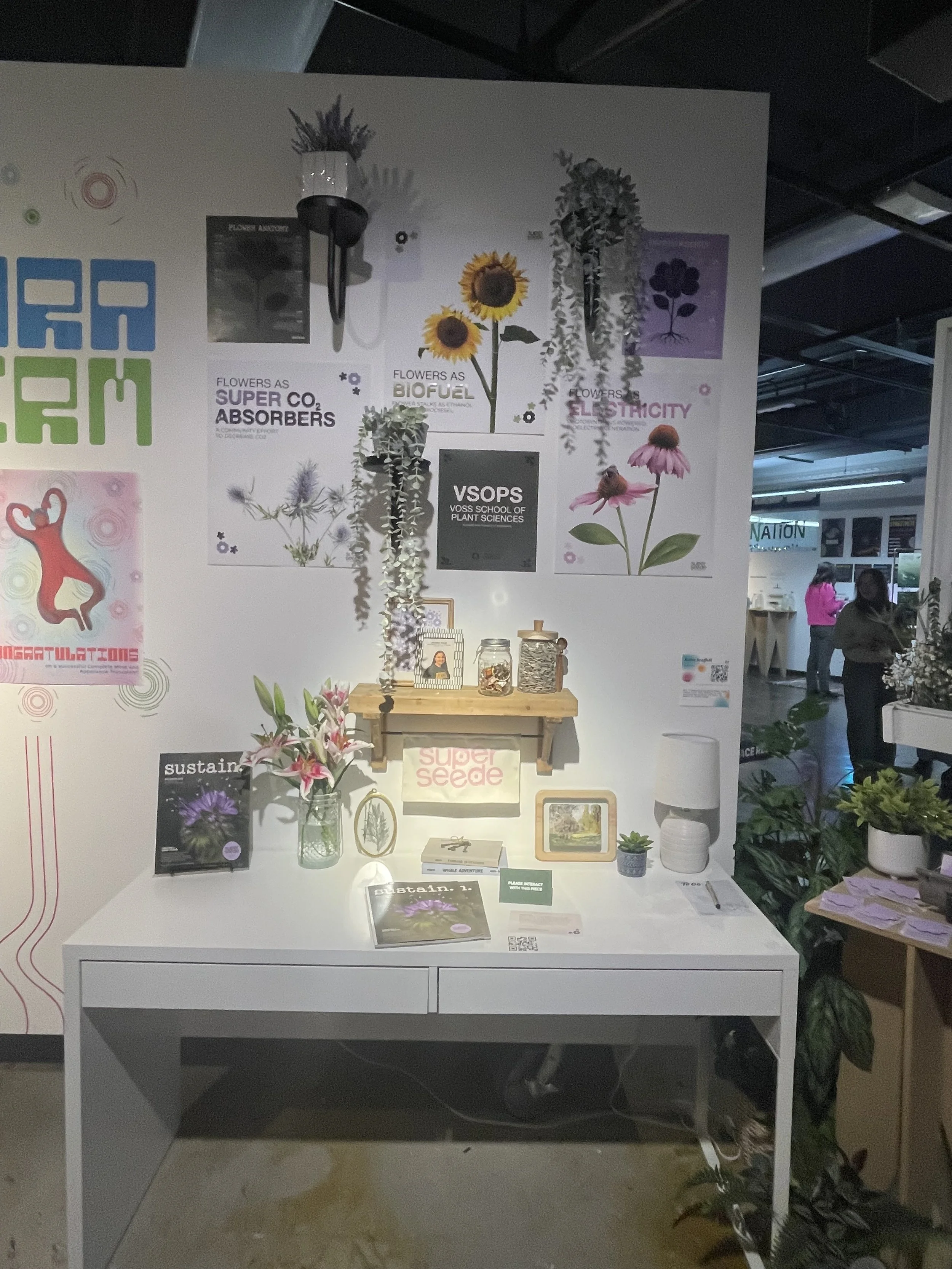 I’m writing this two days after the exhibit and I am still reflecting on the experience. This project challenged me more than any I have undertaken before, pushing my creative, organizational, and personal limits. While it required significant persistence and dedication through long hours and extensive planning, the result was a body of work I am deeply proud of, one I know I will continue to stand behind for years to come. Although flowers have always been an area of interest for me, I was not initially well-versed in their scientific complexity. To do the project justice, I immersed myself in research in order to thoughtfully honor the past, present, and future of the subject. I intentionally chose a serious topic and sought to present a solution, one rooted in optimism and grounded in the belief that change is possible through collective effort. I am honored to have showcased my work alongside my peers. Each project showed an immense amount of effort, and we all deserved recognition for the work produced this semester. As a wrap on this project, while the process came with challenges, this was truly a dream project. I wouln’t change it for the world, and I am incredibly proud of the outcome. I hope that, in some small way, this work contributes to ongoing conversations around climate change and the possibility for positive impact, even through something as simple and flower power.